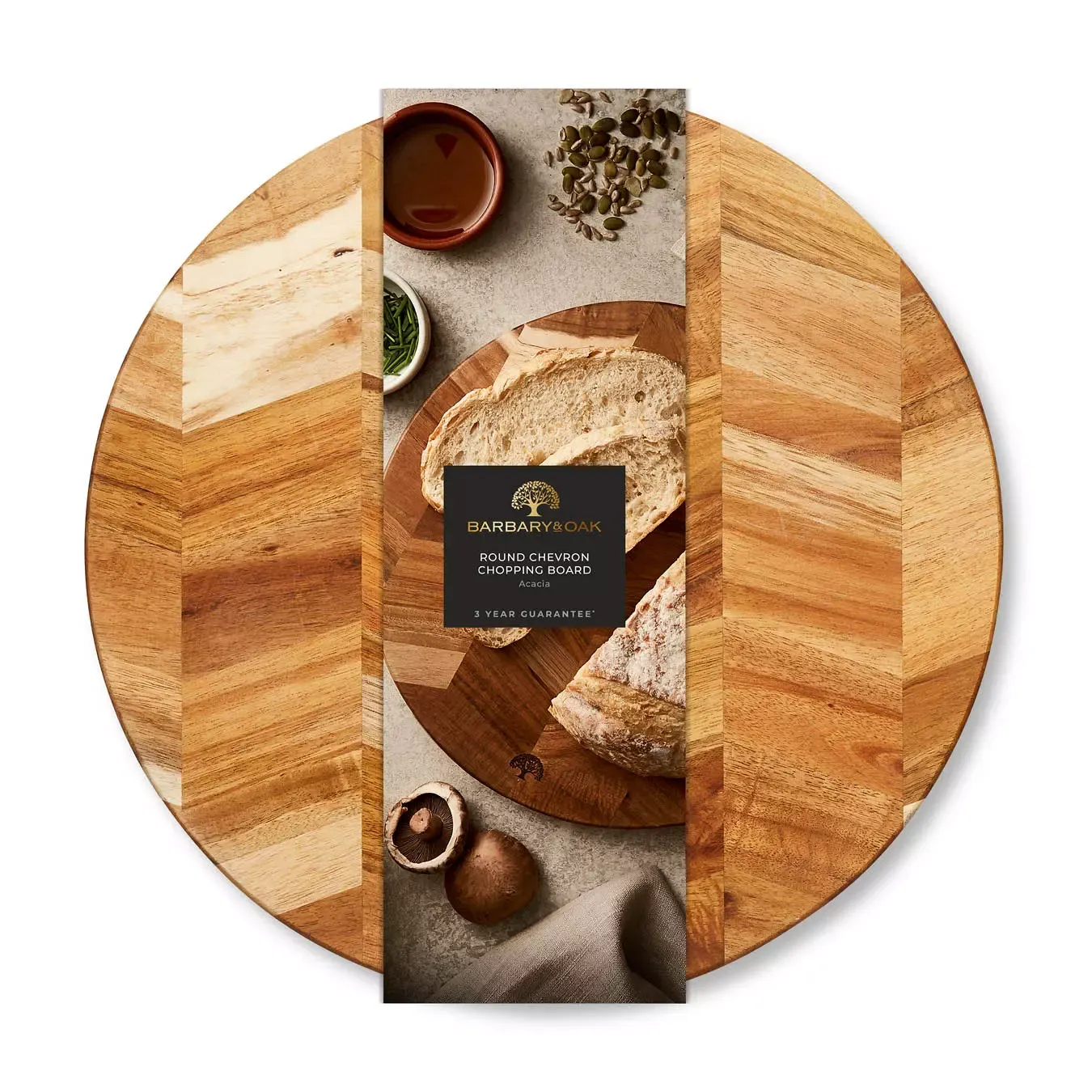 This round chopping board from the Chevron collection by Barbary & Oak, is the ideal choice for minimalist designs and functionality. Prepare a range of ingredients from meat, fish, fruits and vegetables, while its artisan style makes for a perfect serving board for entertaining dinner guests. The robust chopping board made from off-cuts of acacia wood to utilise waste, each piece has its own individual pattern with rich colours and distinctive grain, while tough enough to for everyday use. The hardwood is water resistant and naturally antibacterial, making it perfect for food preparation and presentation boards. For added convenience, the board requires a swift wipe with a damp cloth for an easier clean.