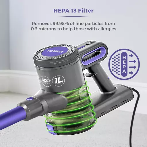 Effortlessly achieve a more efficient and deeper clean around the home with the VL20 3-in-1 Performance Corded Vacuum Cleaner. Its powerful suction capability with a 400W motor makes for hassle-free cleaning. Use as a pole vacuum for carpets and hard floors, a detachable handheld for cars, stairs and upholstery or use the pole for higher hard-to-reach areas like ceilings and curtains. The cyclonic 18KPA suction provides consistent airflow, effortlessly sucking up and breaking down dirt from all floor types for a thorough clean. Its ultra-efficient motorised floor head agitates dust and dirt leaving carpets and hard floors clean and fresh. It transforms into a handheld vacuum that is perfect for staircases, cars, upholstery and pet hair. An anti-allergy HEPA filter removes 99.95% of fine particles from 0.3 microns, making it ideal for allergy sufferers. Its ultra-lightweight body is easy to carry and move from room to room, for cleaning up high or down low anywhere in the home.