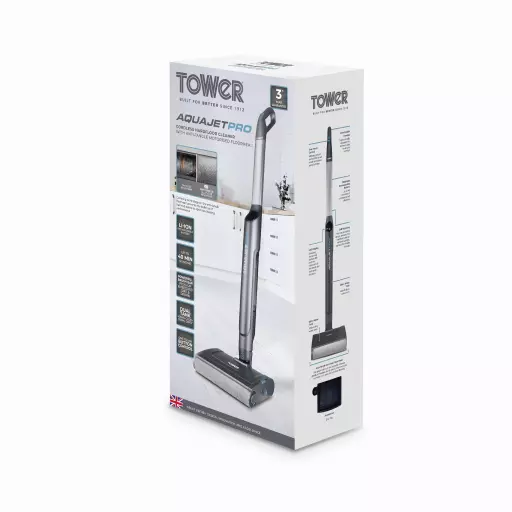 ÂMake short work of cleaning tiles, laminate and hard floors with the Aquajet Pro Hardfloor Cleaner from Tower. The cordless design offers the freedom to clean anywhere within the home without being caught up in cables, whilst the powerful 7.4V output ensure fuss-free and seamless cleaning