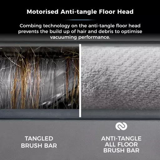 Cordless operation will allow you to use the hardfloor cleaner without getting tangled up in wires or being restricted to the nearest plug socket. An ultra-efficient floor head agitates dust and dirt complete with anti-tangle technology. The anti-tangle brush head expertly combs the brush to prevent build-up of hair and debris for more thorough and efficient cleaning