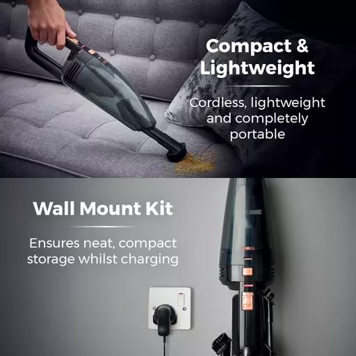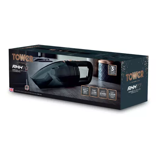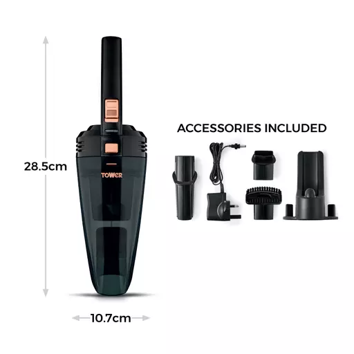 ÂPacked full of power and functionality, this Tower cordless handheld vacuum cleaner is everything you need for a quick clean. Its high-powered motor efficiently cleans small, confined spaces around your home and even car interiors. The strong suction absorbs wet and dry spillages such as dust, crumbs, and spilled liquids. Enjoy uninterrupted cleaning.