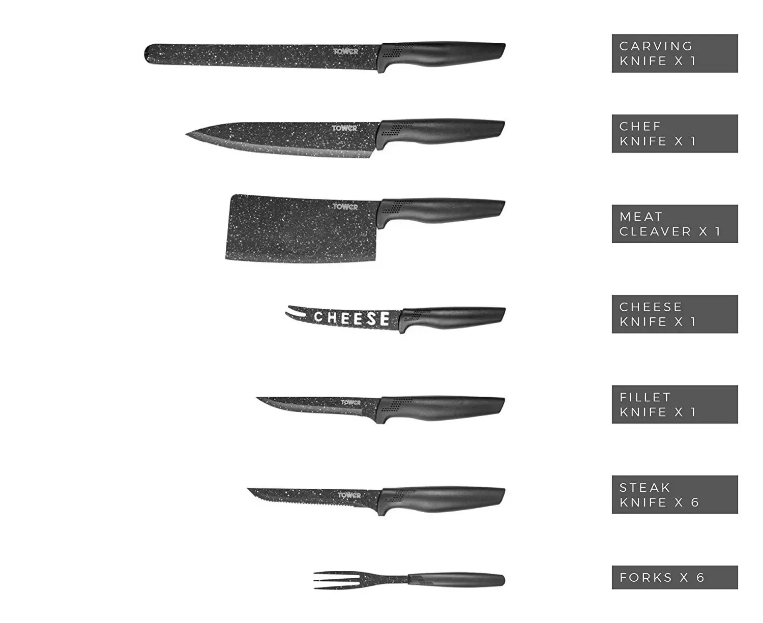 I’m a tower lover anyway, but I have to say this 24 piece set is absolutely great, I only wanted a cleaver now inhale and extra 23 piece, plus l luv the forks.