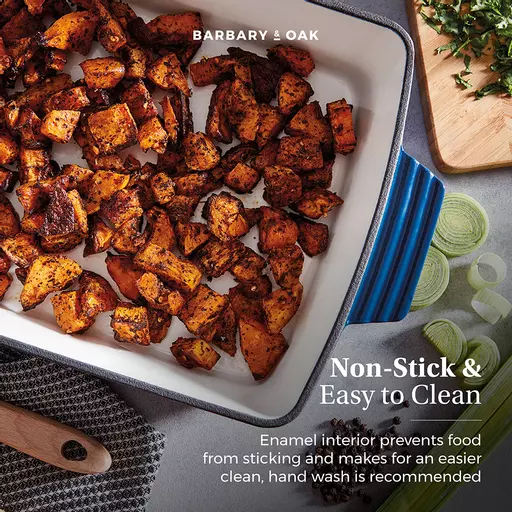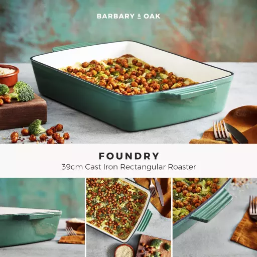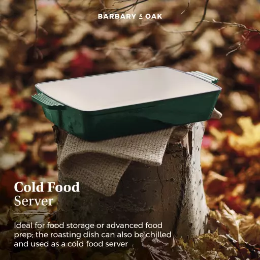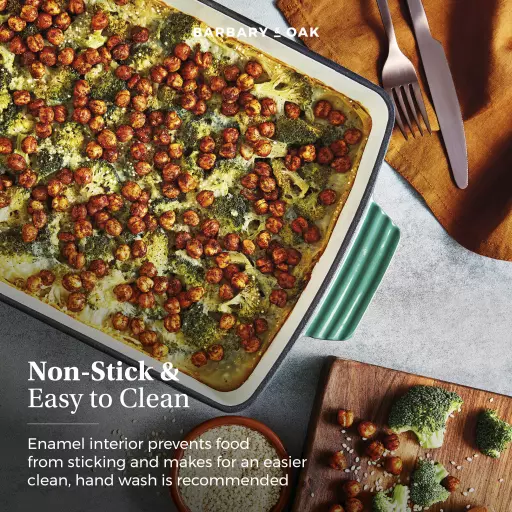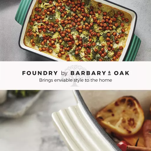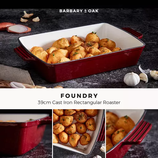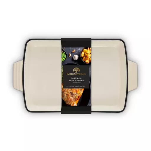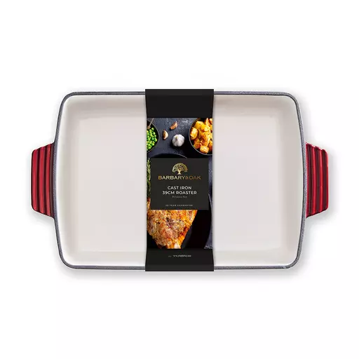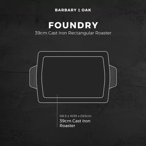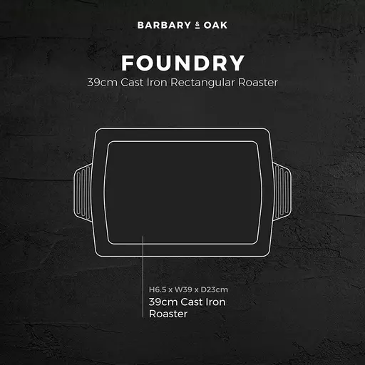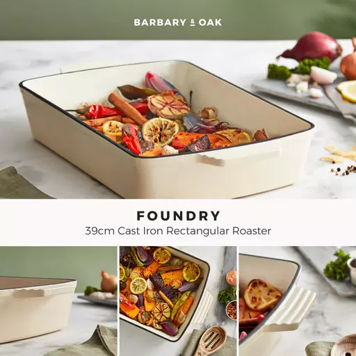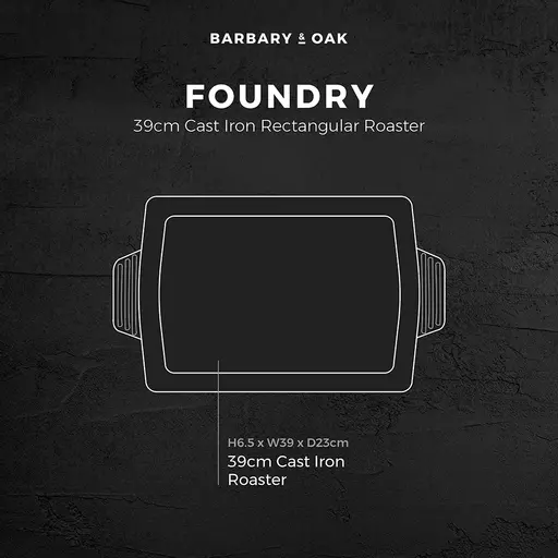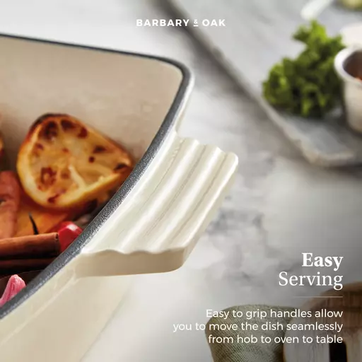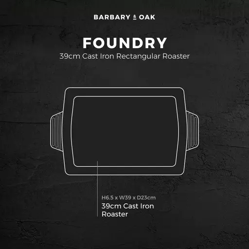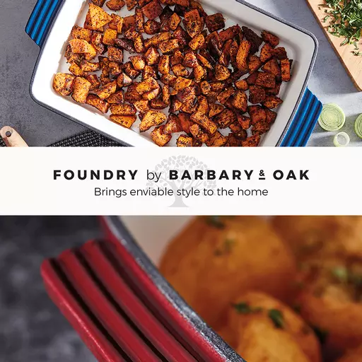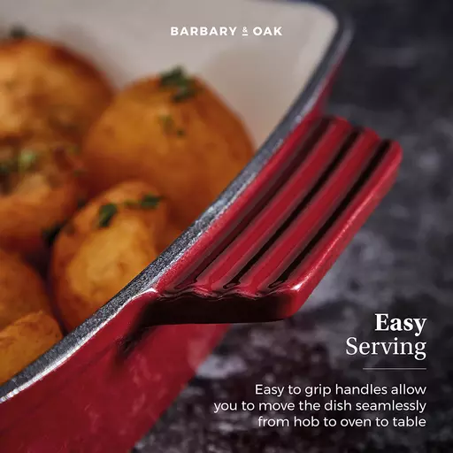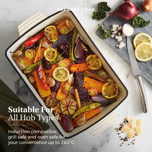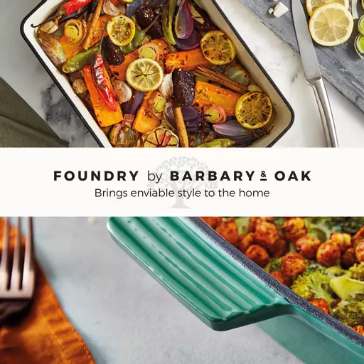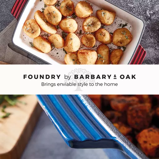 This Barbary & Oak 39cm Roaster is a reliable cooking companion that any avid cook needs in their kitchen. Cast iron retains heat, meaning it keeps food warmer for longer making it perfect for those who love to make a delicious roast for all the family. The enamel interior prevents food from sticking, is easy to clean, and will not absorb odours or flavours. This 3.6 litre roaster is perfect for serving sophisticated al-fresco dining by chilling the dish, and it’s freezer-safe too. Versatile in design, the roaster is suitable for all hob types including induction, grill safe and oven safe up to 260°C. Crafted with handles, they provide an easier grip for when moving from hob to the oven to the table.