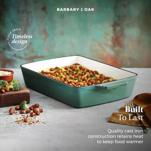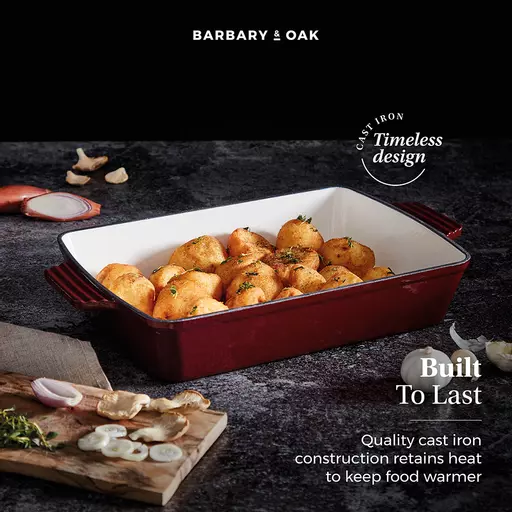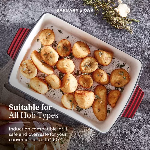 Barbary & Oak Cast Iron Rectangular Roaster with Durable Enamel Interior