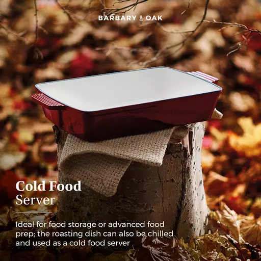 Ideal for advanced food prep; the roasting dish can also be chilled and used as a cold food server – take it outside for some sophisticated al fresco dining
