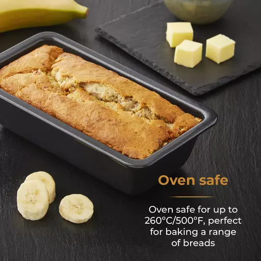 Can withstand temperatures of up to 260°C/500°F in the oven, this loaf tin distributes and retains heat quickly and evenly, perfect for baking loaves