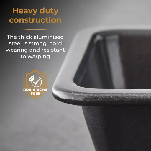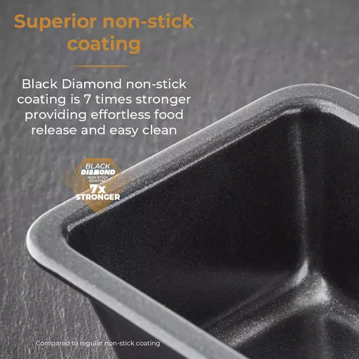Reinforced with superior Black Diamond non-stick coating that is 7x stronger than other bakeware coatings. Its highly effective properties prevent bakes from sticking to the tin, making for an effortless release and exceptional clean.