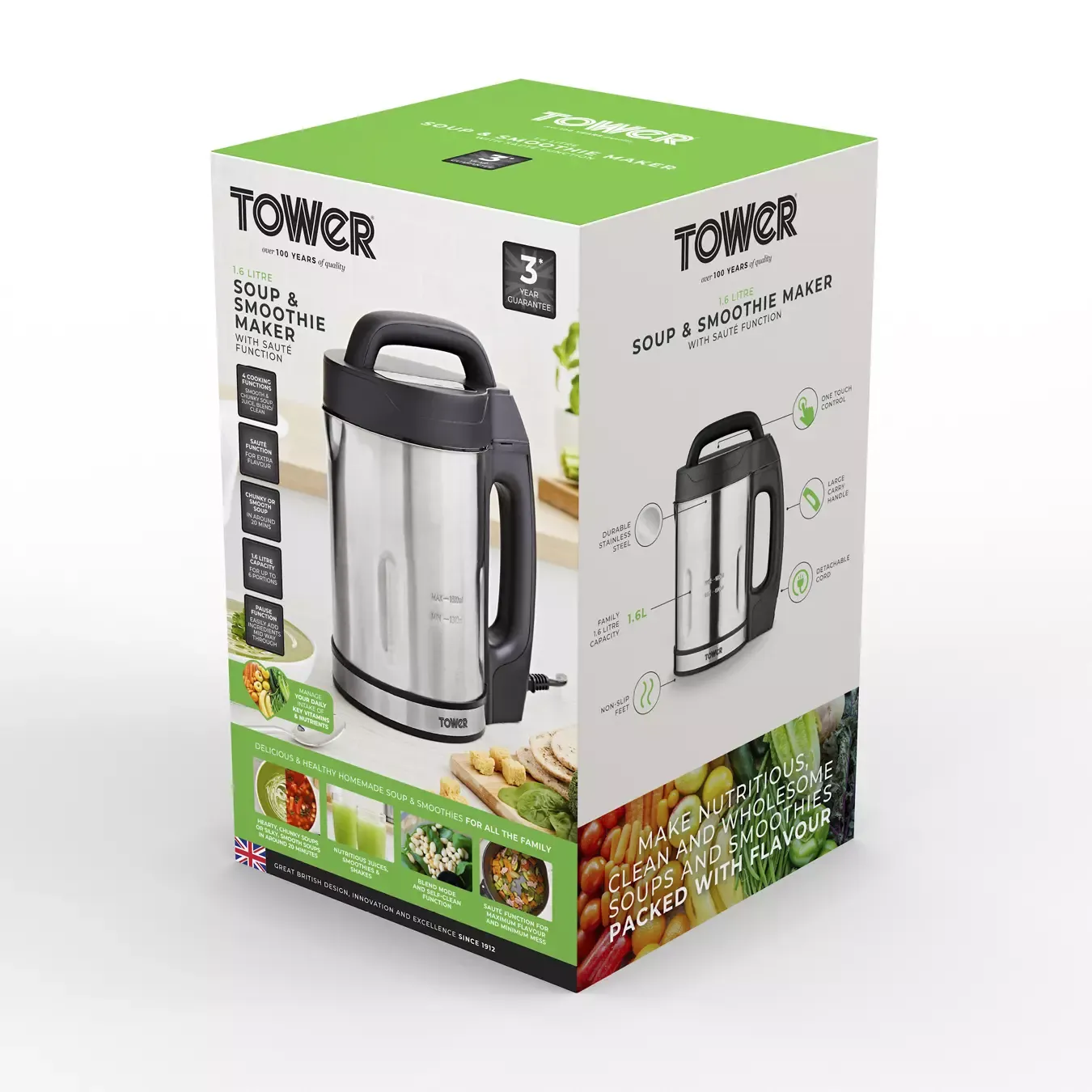 Add more flavour to your dishes by heating meats, vegetables, herbs and spices all in one place with the Tower Soup Maker with Sauté Function. Simply add the remaining ingredients into the jug to create fresh and healthy soups without all of the mess. Makes up to 6 portions for nutritious family meal times after a busy day or healthy batch cooking for the week ahead.