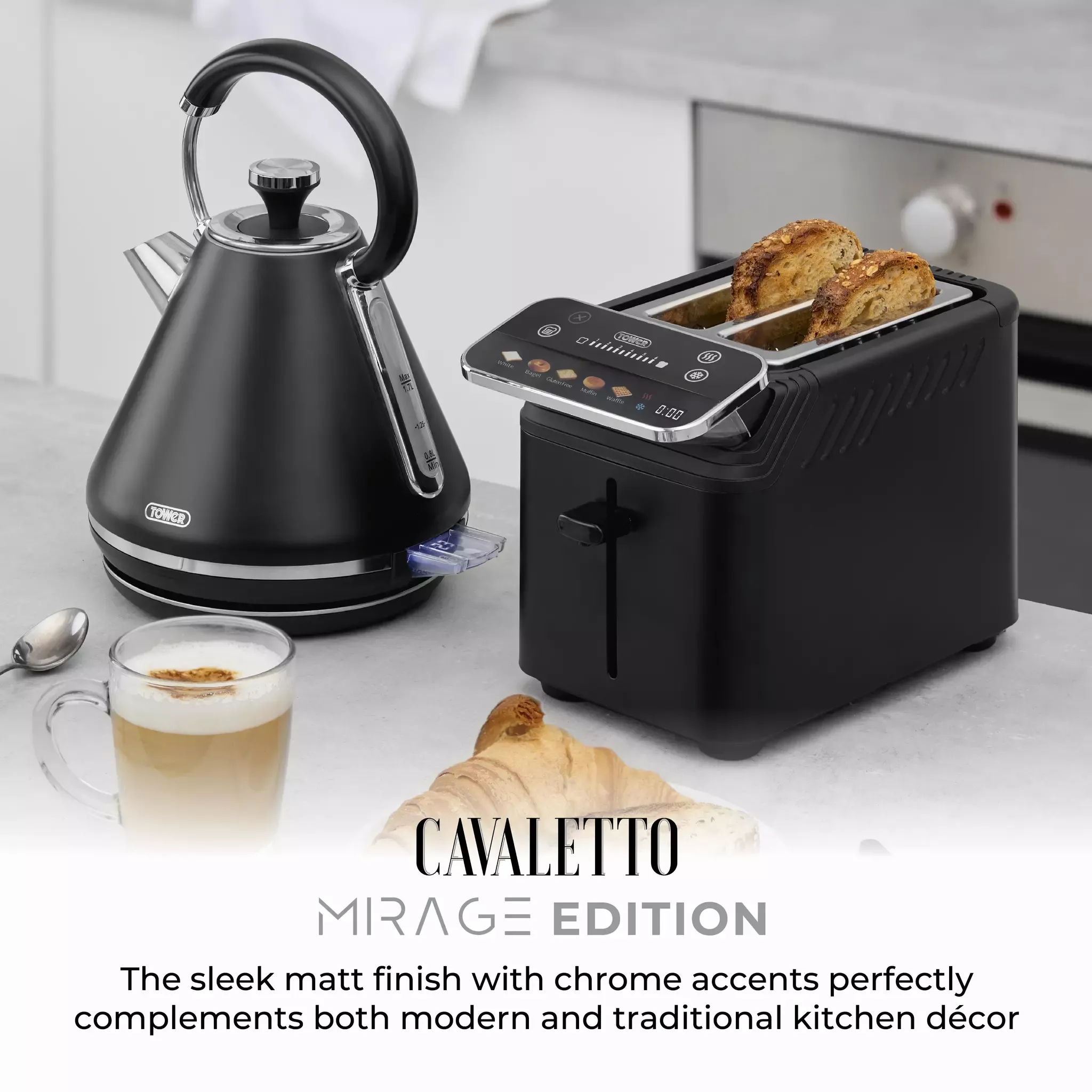 The sleek black finish & gleaming chrome accents perfectly complements both modern & traditional kitchen décor. It can be partnered with the Mirage Pyramid Kettle to create a set that really bring your worktop to life