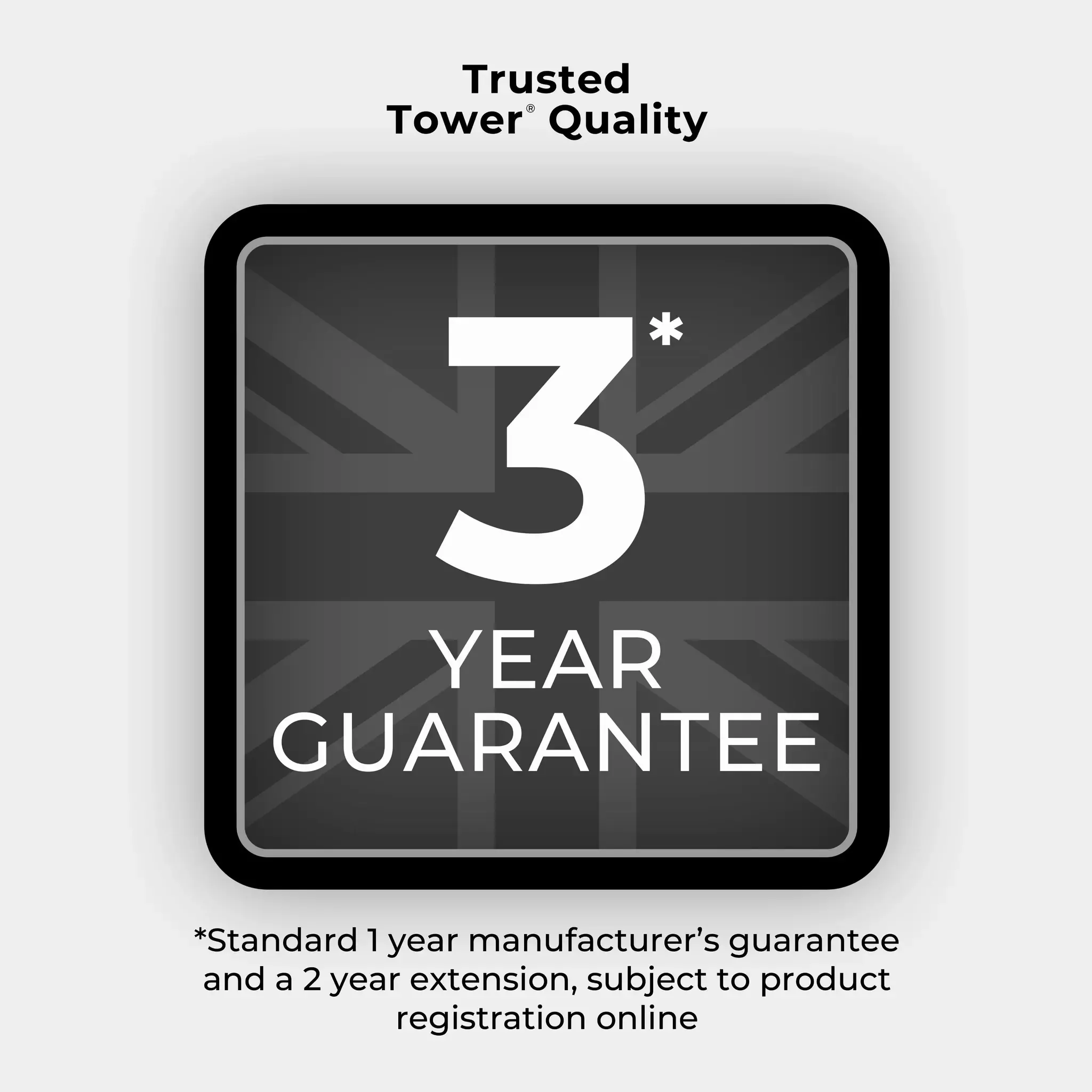 Trusted Tower quality with a standard 1 year manufacturer’s guarantee & an optional 2 year extension, subject to product registration online