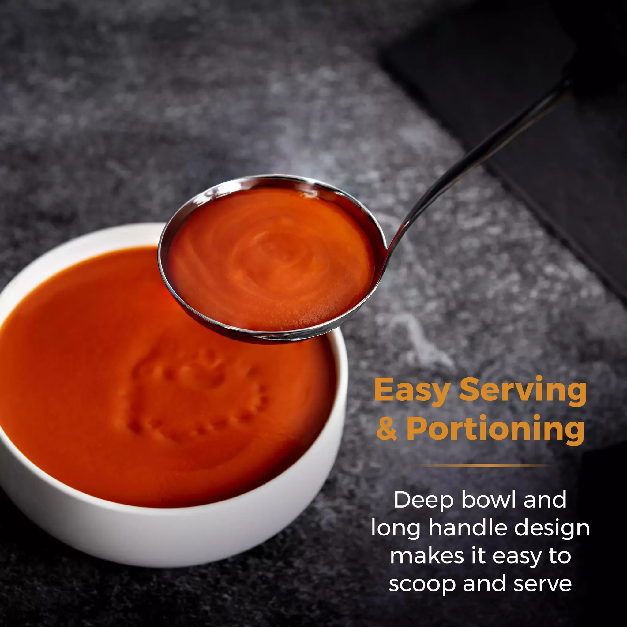 Sturdy stainless steel ladle is essential for cooking and serving your homemade soups and sauces.Â
